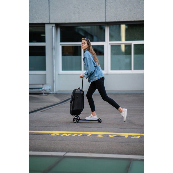 Gladko, elegantno in izjemno vsestransko: Micro Scooter Luggage 4.0 je popoln spremljevalec za poslovna potovanja, krajše počitnice ali mestno življenje. V nekaj sekundah se preprost kovček na kolesih spremeni v skiro, ki vam omogoča enostavno potovanje po mestih, železniških postajah in letališčih sveta. Elegantno trdo ohišje s kapaciteto 33 litrov ponuja dovolj prostora za vaša oblačila, prenosni računalnik in vse ostalo kar morate vzeti s seboj. Največje udobje zagotavlja po višini nastavljivo krmilo, ki ga lahko optimalno prilagodite svoji višini v obeh načinih prevažanja. Ohišje je možno tudi sneti s skiroja s preprostim mehanizmom na klik in ga po potrebi prenašati z integriranim ramenskim trakom. Potovanje še nikoli bilo tako enostavno!